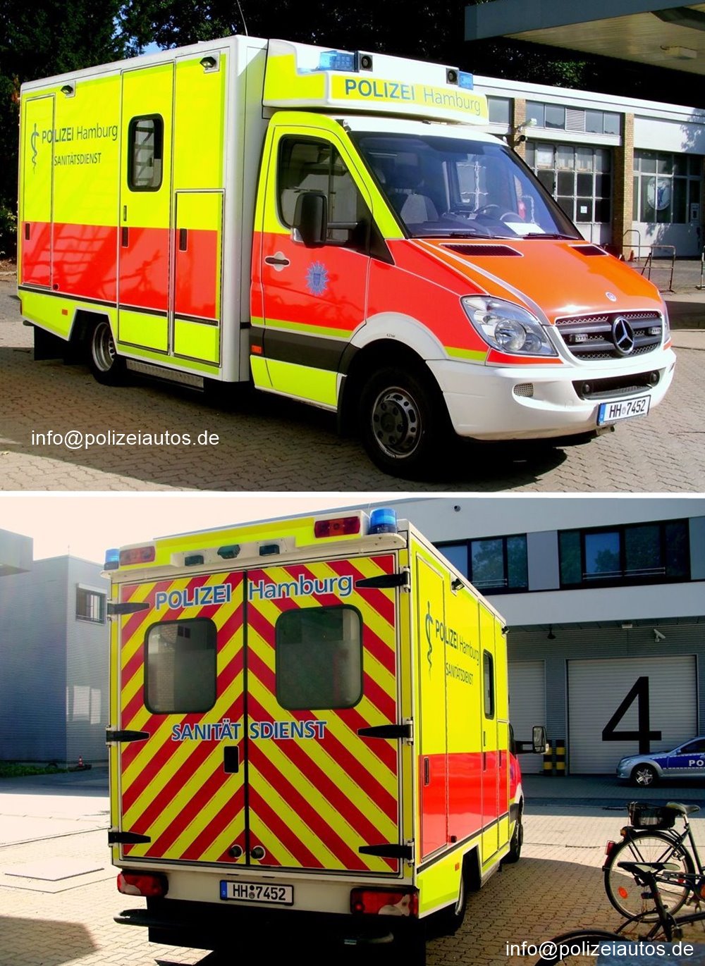 | Beschreibung: | Sanitätskraftwagen der Polizei Hamburg. Dieser ehemalige RTW -Aufbau Fahrtec- wurde im Frühjahr 2018 von der Feuerwehr Hamburg übernommen (Fotos 7+8) und den polizeilichen Bedürfnissen angepaßt. Mittlerweile wurde die Motorhaube um einen POLIZEI-Schriftzug ergänzt und die Felgen schwarz lackiert (Foto 5+6). Fotos + Infos: I. Kröning |
