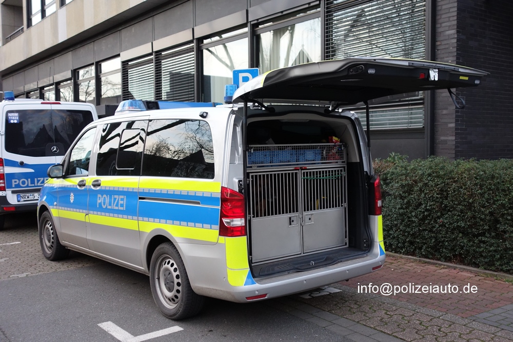 | Beschreibung: | Diensthundführerkraftwagen der Polizei Nordrhein-Westfalen. Diese Fahrzeuge besitzen beidseitig Schiebetüren und die hinteren Scheiben sind abgedunkelt; zumeist sind sie mit zwei Hundekäfigen ausgestattet, jedoch ohne Dachlüfter (zumindest bei der neunen Serienbeschaffung). Diese neuen Vitos haben hinten einen größeren und besser ins Auge "fallenden" POLIZEI-Schriftzug erhalten. |