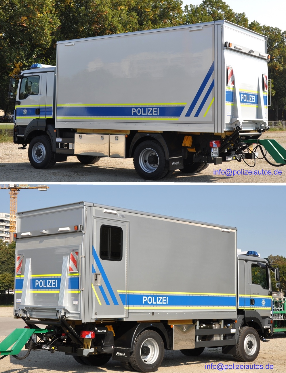 | Beschreibung: | Einsatzfahrzeug (GGKW ?) der TEE der Bereitschaftspolizei Bayern, seit September 2020. Das Fahrzeug ist mit einer Ladebordwand der Fa. Dautel ausgerüstet, der Aufbau kommt von der Fa. Albert in Wendelstein. Fotos: Helmut Kunert (www.blaulichtwelten.de). |