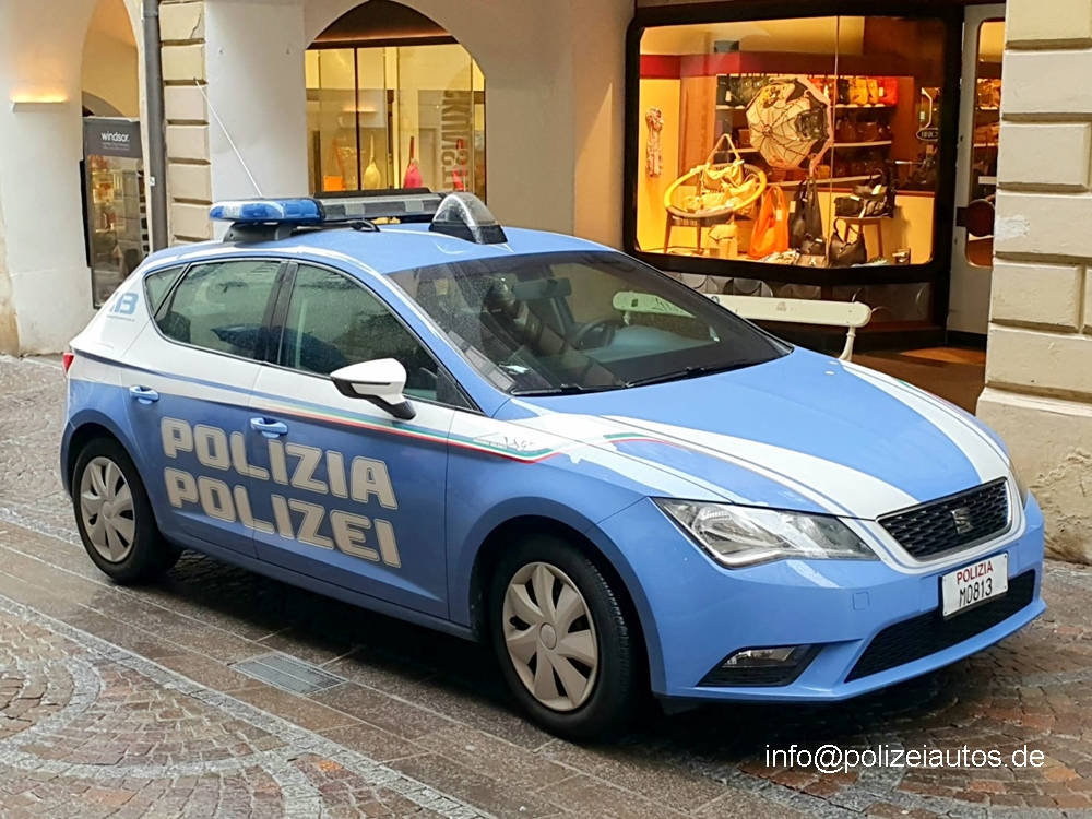 Funkstreifenwagen mit Schriftzug in italienisch und deutsch, wie es in Südtirol üblich ist.