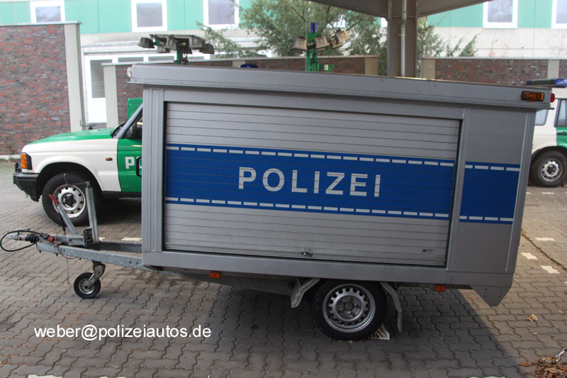 | Beschreibung: | Einachsiger Anhänger des Herstellers BAOS zum Transport von Verkehrs-/ Kontrollstellengerät. Der Anhänger besitzt an beiden Längsseiten Rolläden, das Heckportal ist zweiflügelig ausgeführt. Foto: Jörns |