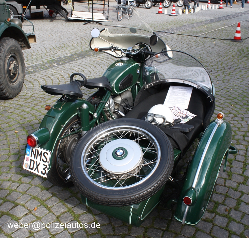 | Beschreibung: | Streifenkrad mit Beiwagen Technische Daten: Gesamtmasse: 600kg Leergewicht: 303kg Hubraum: 590ccm Erstzulassung: August 1963 Leistung: 30 PS/ 5800 U/min Kraftstoff: Normalbenzin vormaliges Kennzeichen: HL-3077. Das Krad war bis zu seiner Aussonderung (vermutlich 1978) bei der PD Schleswig-Holstein Süd als Schulungsfahrzeug eingesetzt. |