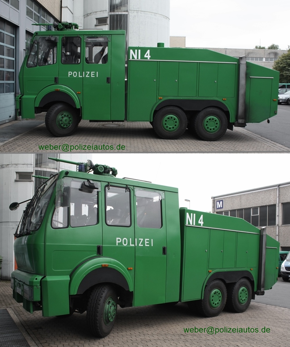 | Beschreibung: | Wasserwerfer 9000 der niedersächsischen Bereitschaftspolizei, hier mit neuer Kennung NI 4 Foto 1: Olaf Schulz |