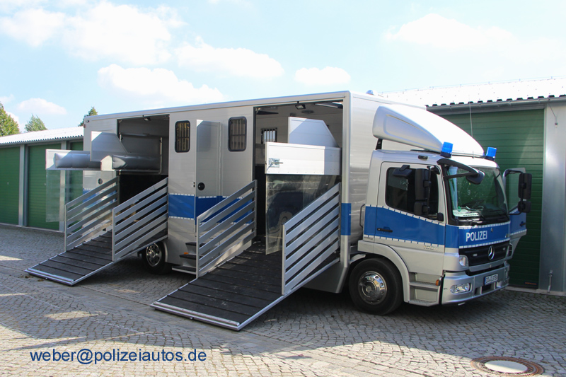 | Beschreibung: | Pferdetransporter mit einem Aufbau der Firma FK, Baujahr 2010. Der Aufbau wurde gegenüber dem 2007 gelieferten Fahrzeug gespiegelt um im Einsatz zwischen den Fahrzeugen eine Art "Koppel" Anlegen zu können. Vorn, hinten und an den oberen hinteren Seitenwänden werden nun LED Blaulichter verwendet. Fotos 1+2: David Geyer |