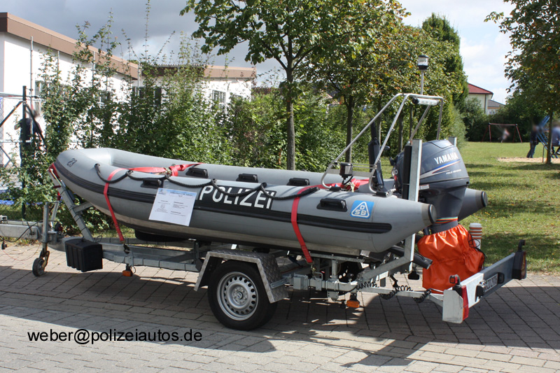| Beschreibung: | Schlauchboot 23 der Technischen Einsatzeinheit, TEE, T-Zug. Technische Daten: Schlauchboot 4.3 SR, halbstarr, Typ B Hersteller: Deutsche Schlauchboote (DSB) Länge: 4,30m Breite: 1,95m Tiefgang: 0,30m Gewicht: 1000kg 5 Sitzplätze Höchstgeschwindigkeit: 35 kn Aufbau: 6 unabhängige Luftkammern Aluminiumkiel mit Schlauchwulst Motor: Yamaha 4-Takt Außenborder mit 30 PS. Hauptaufgabenbereich: Versorgungs- und Zubringerboot in besonders seichten Gewässern Rettungsboot (Retten von Verletzten) Unterstützung von Tauchern. |