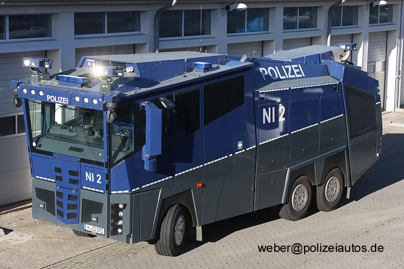 | Beschreibung: | Ca. 6 Wochen nach der offiziellen Übergabe des WaWe 10 erhielt dieser nun seine taktische Kennung: NI 2. Nunmehr ist Niedersachsen das erste Bundesland, das seine TEE-Sonderfahrzeuge gem. der Farbstudie von Polizeiautos.de lackiert und beschriftet hat. Seit Juni 2015 verfügt die BePo Hannover über einen zweiten Wawe 10000, dem optisch und technisch gleichen NI 1. |