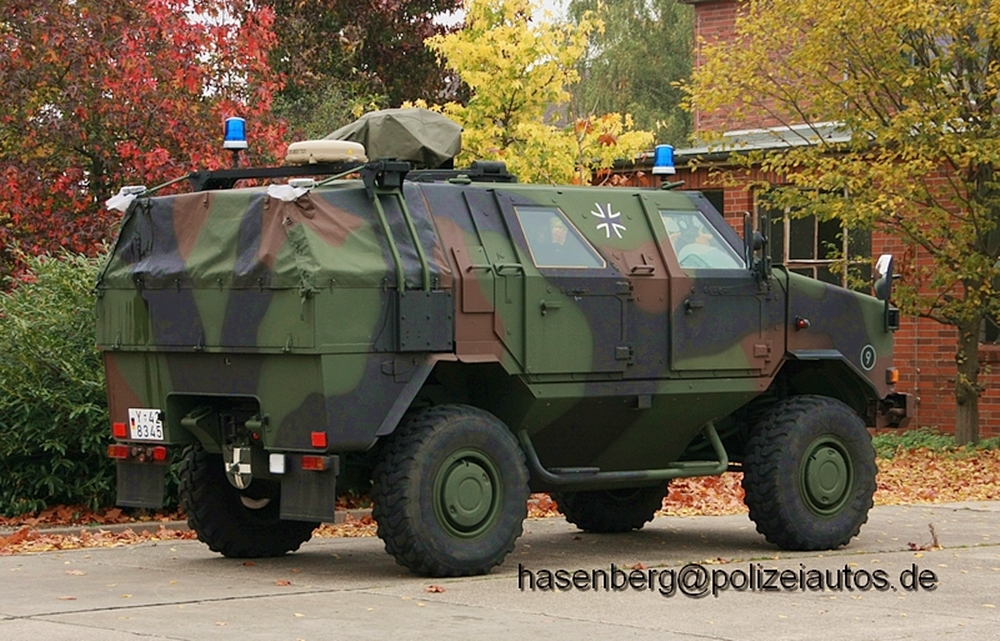 | Beschreibung: | Gepanzertes Patrouillenfahrzeug der Feldjäger. Hier ist der Dingo 1 von KMW in der Ausführung für die Feldjägertruppe zusehen. Die Version Feldjäger verfügt als einzige über eine Sosi Anlage mit Autsteckblaulichtern und Frontblitzern. |