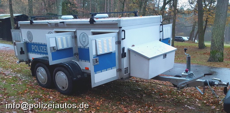 | Beschreibung: | Dieser Anhänger (Anh 13; Hunde-Trp-Anh) verfügt über 6 klimatisierte Ablageplätze von Diensthunden und wird im Bereich Aus- und Fortbildung der Bundespolizei genutzt. Gegenüber früher beschafften Hundetransportanhängern wurde dieses Modell seitlich mit blauen Folien und Gaps sowie Polizei-Schriftzügen beklebt. Fotos: Michael Nehring |