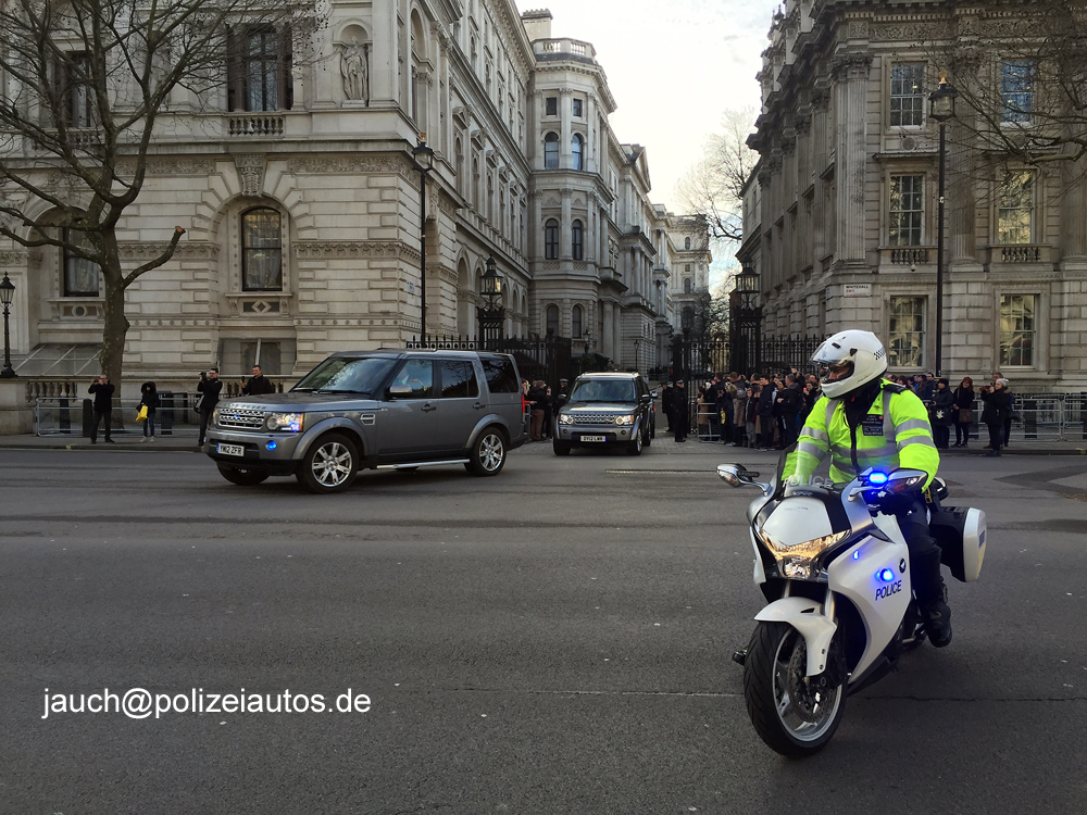 Besuch in der Downingstreet 10 und Begleitung durch die Special Escort Group ( SEG) von der Metropolitan Police.