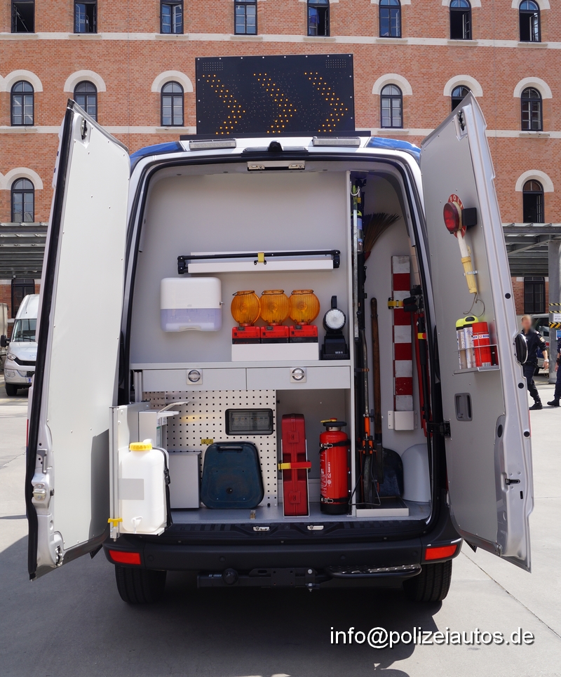 Dieses Fahrzeug wird bei der Polizei in Wien zur Aufnahme von schweren Verkehrsunfällen eingesetzt. Da es vorwiegend im Städtischen Bereich zum Einsatz kommt hat man sich hier für eine Variante mit kurzem Radstand und gegen Dachaufbauten entschieden. Ausgebaut wurde dieses Fahrzeug bei der Österreichischen Firma Dlouhy in Tulln Foto und Info: Gerhard Hössl |