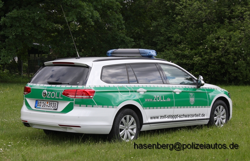 An der unteren Fahrzeugseiten wurde wieder der Internetlink zum Hinweis auf illegale Beschäftigung aufgebracht - www.zoll-stoppt-schwarzarbeit.de Diese Fahrzeuggeneration findet seit 2016 Verwendung beim Zoll. Im Kofferraum sind Einbauten zum Transport von beschlagnahmten Akten und Gegenständen verbaut worden. |
