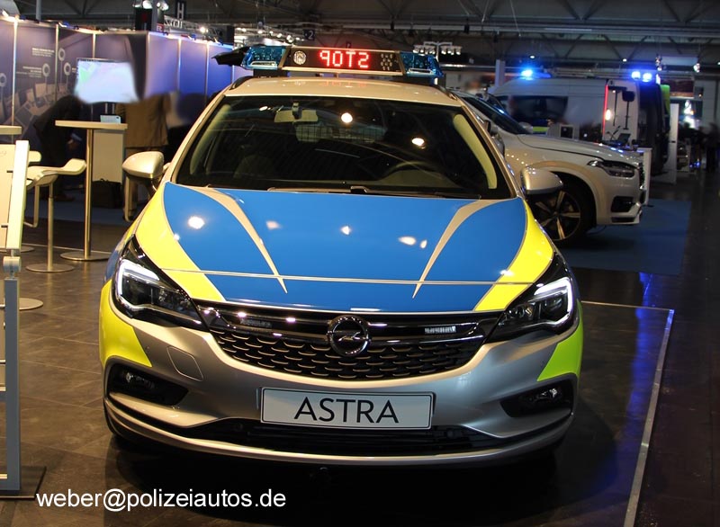 Opel Astra Sports Tourer als Funkstreifenwagen in der VESBA-Version, ausgestellt auf der GPEC 2016.