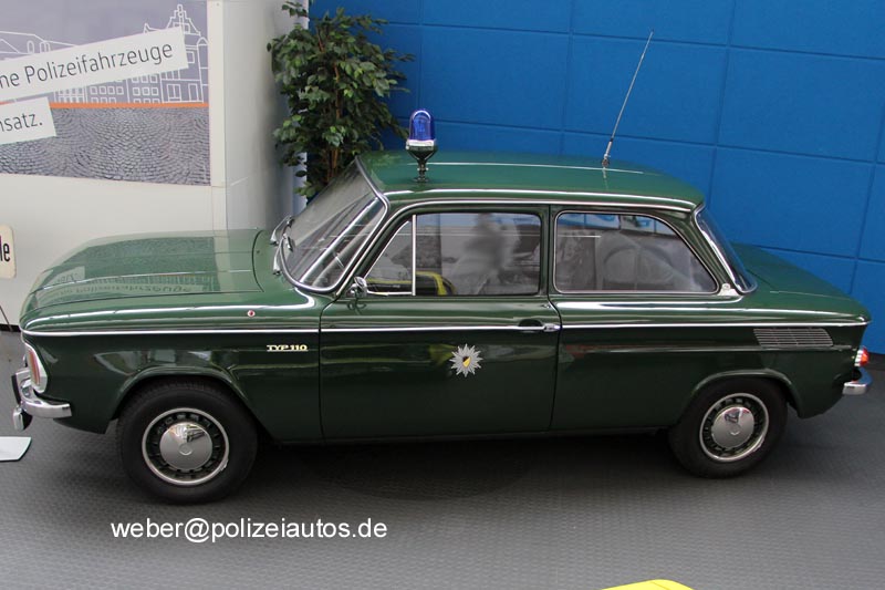 | Beschreibung: | Funkstreifenwagen der Polizei Baden-Württemberg. Von 1966 bis 1972 war dieser Fahrzeugtyp ausschließlich im Bundesland Baden-Württemberg eingesetzt. Technische Daten Baujahr: 1966 Motor: 4-Zylinder-Reihenmotor, wassergekühlt Hubraum: 1085 ccm Leistung: 53 PS / 39 kW Höchstgeschwindigkeit: 143 km/h |
