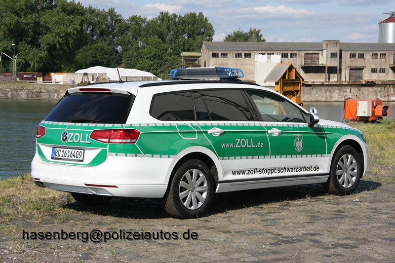An der unteren Fahrzeugseiten wurde wieder der Internetlink zum Hinweis auf illegale Beschäftigung aufgebracht - www.zoll-stoppt-schwarzarbeit.de Diese Fahrzeuggeneration findet seit 2017 Verwendung beim Zoll. Im Kofferraum sind Einbauten zum Transport von beschlagnahmten Akten und Gegenständen verbaut worden. Im Gegensatz zu diesem Fahrzeugtyp aber mit Allradantrieb. |