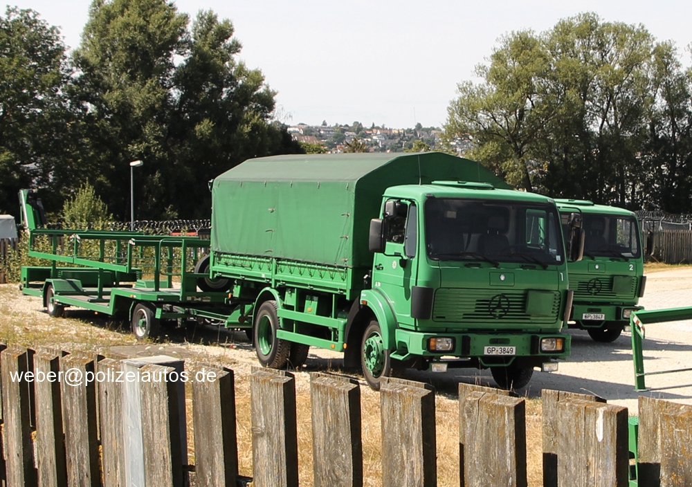 Lkw der Bereitschaftspolizei Baden-Württemberg zum Transport von sog. "Hamburger Gittern" mit entsprechendem Anhänger der Fa. EMPL.