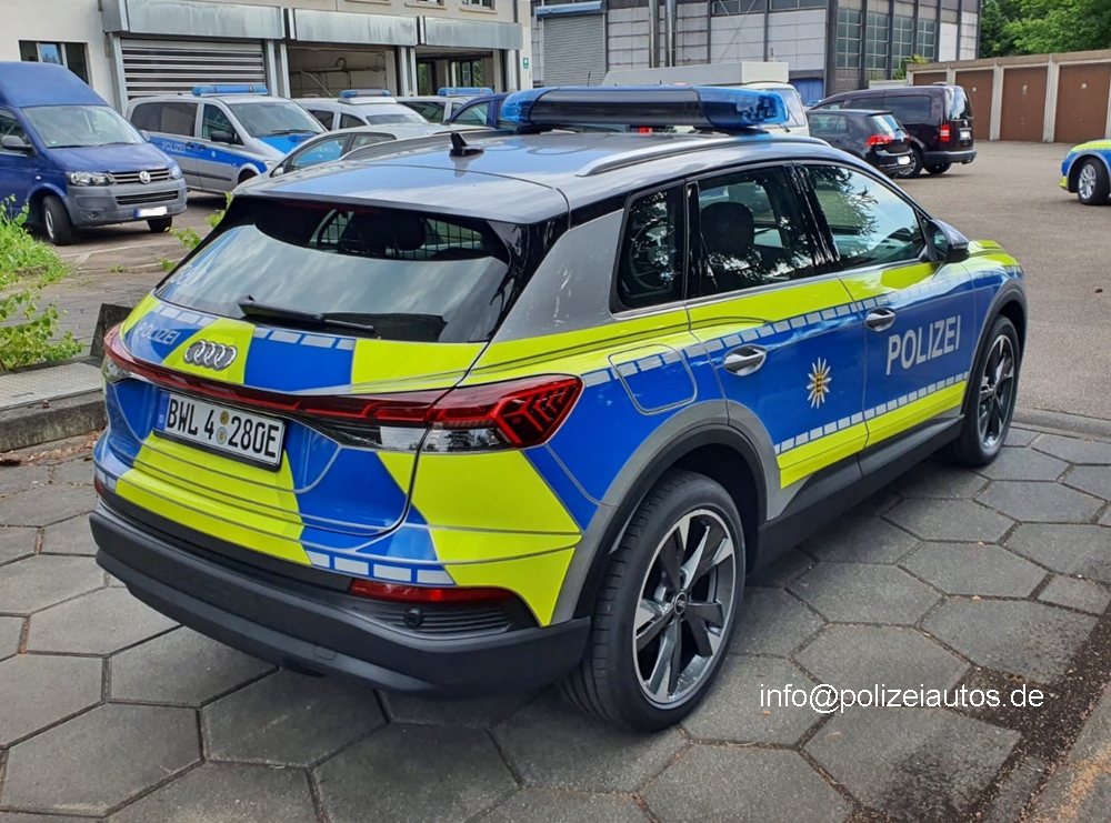 Elektrischer Funkstreifenwagen der Polizei Baden-Württemberg seit August 2024.