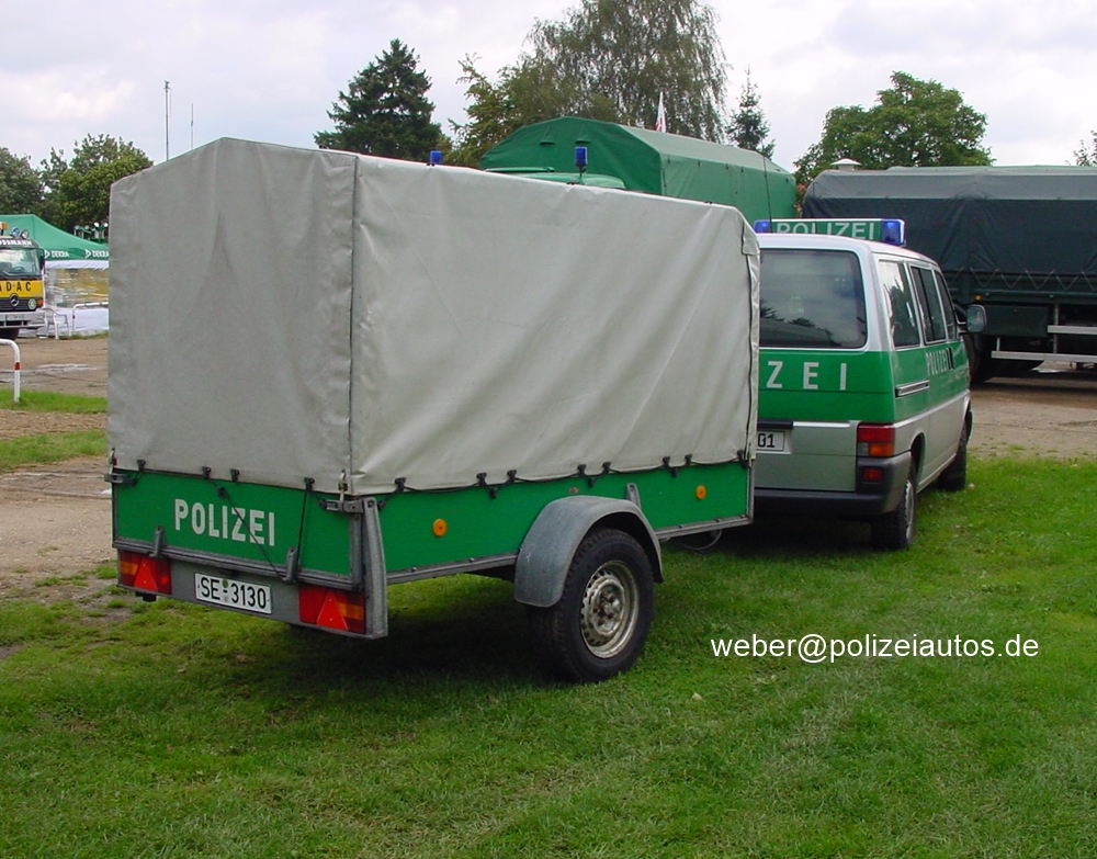 Funkstreifenwagen der Polizei Schleswig-Holstein mit Einachs-Anhänger.