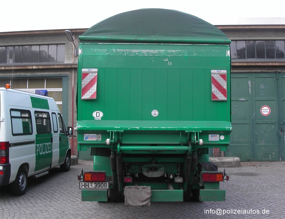| Beschreibung: | Lkw Plane/Spriegel der Bereitschaftspolizei Hamburg. Das Fahrzeug ist heckseitig mit einer Ladebordwand der Fa. Behrens ausgestattet. Foto 1: Jörns : Fotos 2-4: Michael Hinz |