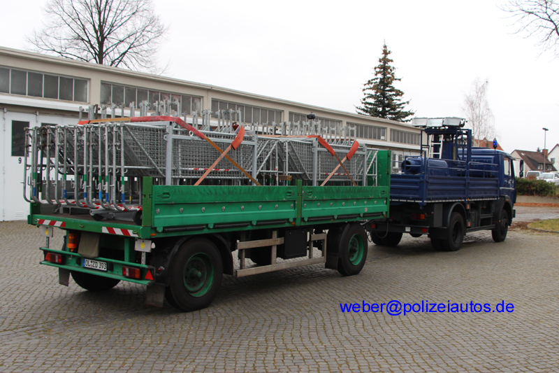 | Beschreibung: | Gespann der Oldenburger Bereitschaftspolizei: Limakw als Zugfahrzeug für den mit Hamburger Gittern beladenen Kögel-Anhänger. |