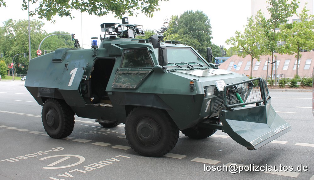 | Beschreibung: | Bundeseinheitlicher Sonderwagen 4 der Bereitschaftspolizei Hamburg. Bei dem aus dem Bestand der Bundespolizei stammenden Fahrzeug wurde der Lichtaufsatz nachträglich mit 5 LED-Scheinwerfern versehen, am Heck wurde eine Rückfahrkamera installiert. Im Gegensatz zu diesem SW 4 sind hier keine LED-Blaulichter montiert, ebenso fehlt der Hamburger Polizeistern. |