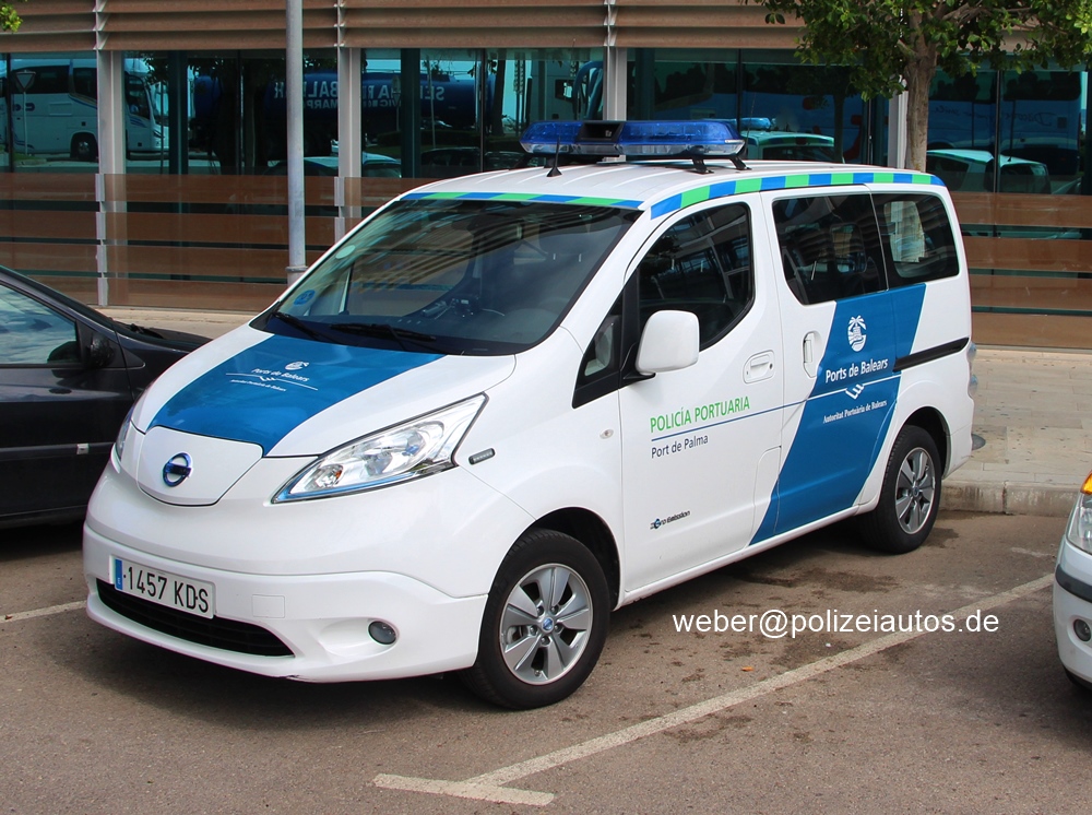 Rein elektrisch angetriebenes Einsatzfahrzeug der Policia Portuària im Hafen von Palma de Mallorca (2019).