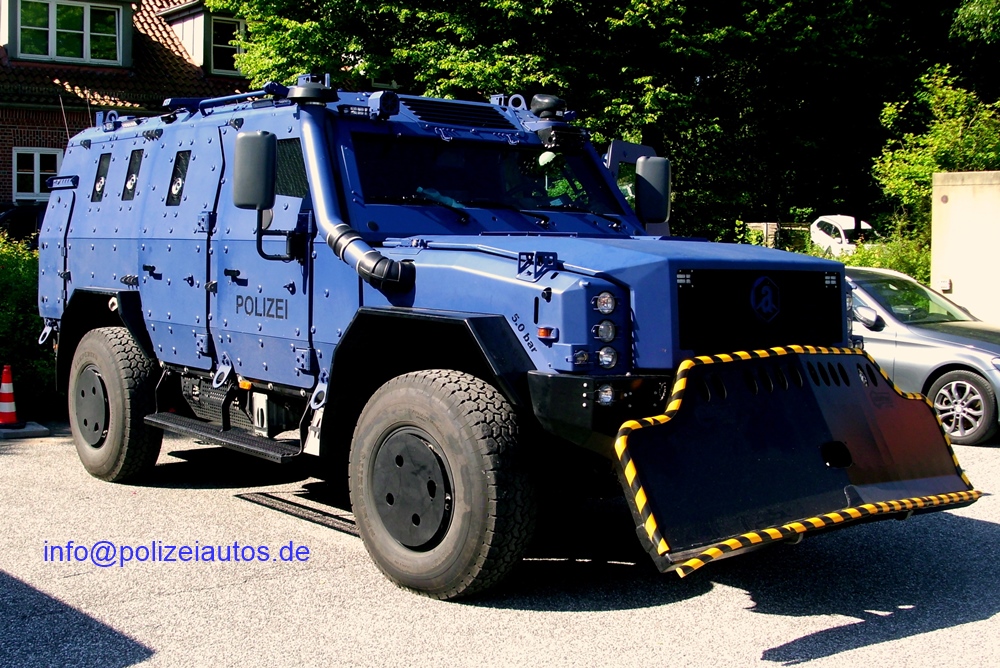 | Beschreibung: | Der bereits bekannte Achleitner - HMV Survivor der Polizei Hamburg hier mal ohne Aufbau, dafür mit einer POLIZEI-Beschriftung auf den vorderen Seitentüren. Foto: I. Kröning |