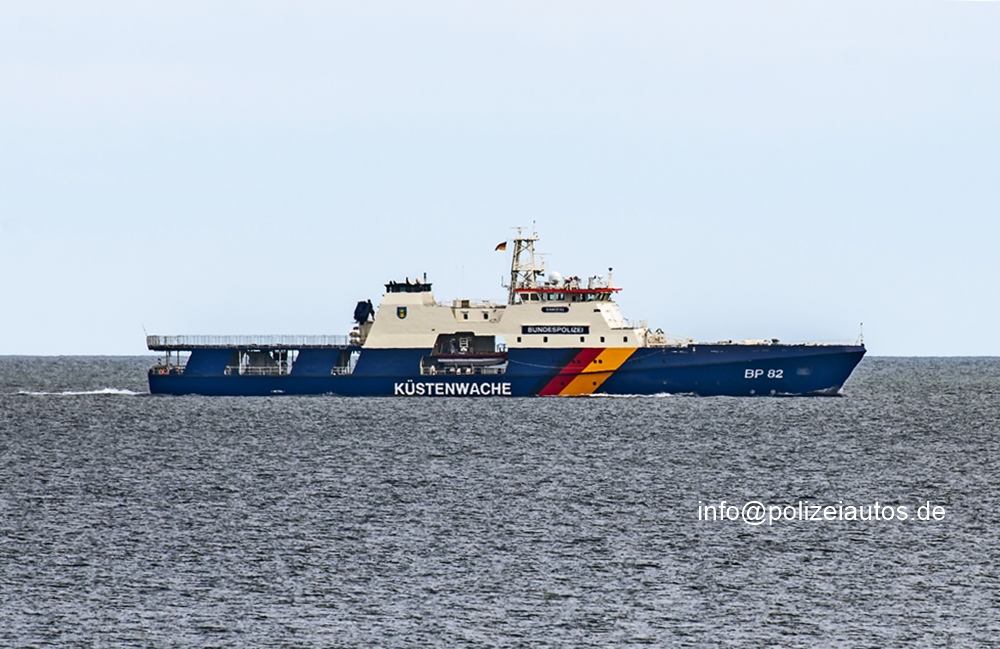 | Beschreibung: | Das Foto zeigt das zweite Einsatzschiff der Potsdam-Klasse, die BAMBERG, des Bundespolizeiamtes See / der Küstenwache. Technische Daten Schiffsart: Patrouillenboot Bauwerft: Fassmer-Werft Bauzeitraum: seit 2017 Stapellauf des Typschiffes: 8. Dezember 2018 Gebaute Einheiten: 3 Dienstzeit:seit 2019 Schiffsmaße und Besatzung Länge: 86,02 m (Lüa), 79,20 m (Lpp) Breite: 13,42 m Seitenhöhe: 6,50 m Tiefgang: max. 3,95 m Vermessung: 2.092 BRZ, 627 NRZ Besatzung: 14 Maschinenanlage/Maschine: 2 × Wärtsilä-Dieselmotoren, Typ 12V 26F Maschinenleistung: 8.160 kW (11.095 PS) Höchstgeschwindigkeit: 21 kn (39 km/h) Propeller: 2 × Verstellpropeller Bewaffnung: 1 × Mk 110 Fotos: St. Müller |