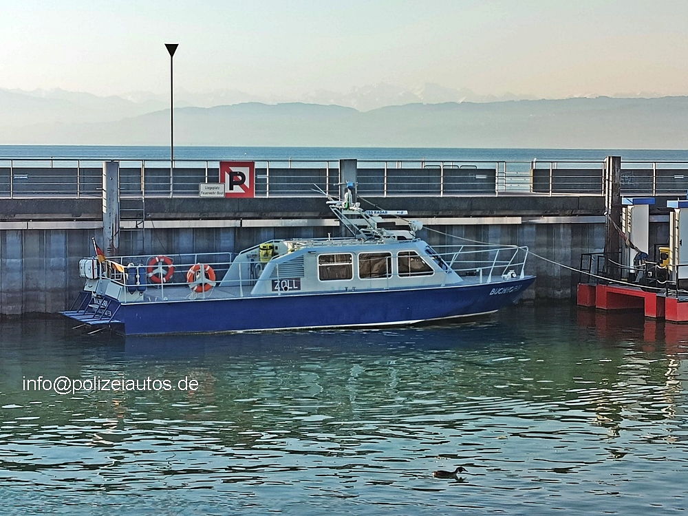 Zollboot Buchhorn auf dem Bodensee, nun auch in der aktuellen Farbgebung.