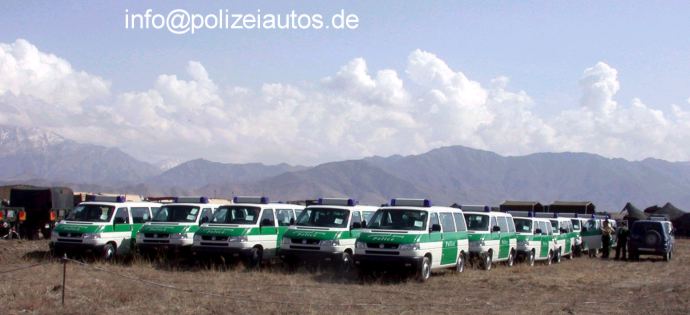 | Beschreibung: | Die Deutsche Regierung hat als Aufbauhilfe für die dortige Polizei 40 fabrikneue VW T4 nach Afghanistan geliefert. Foto: P. Faber (www.ihr-notfallausruester.de/) Weitere Infos beim Auswärtigen Amt. |
