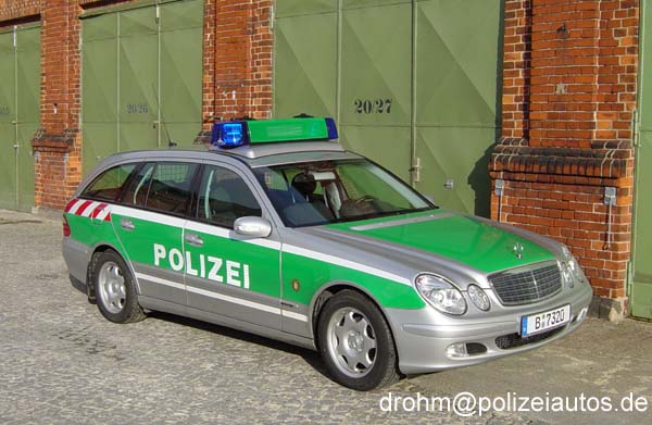 Beschreibung: Einsatzwagen Autobahn (Ewa BAB) der Berliner Autobahnpolizei mit ausziehbarem Geräteträger, rot/weißer Warnmarkierung nach DIN an den Seiten und im gesamten Heckbereich, zusätzlichen reflektierenden Längsstreifen unterhalb der Seitenfenster bis zur Front und unterhalb der Zierleiste, Anhängerkupplung, Geschwindigkeitsmessgerät Police Pilot, 10 Leitkegel BAB (groß), 8 Nissenleuchten, Ölbindemittel, Abschleppstange, Brecheisen, Handscheinwerfer und diversem anderen Ausrüstungsmaterial.
