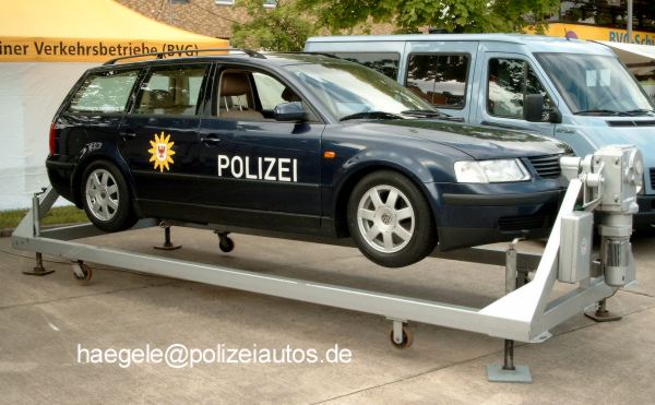 Das Fahrzeug kann "auf das Dach" gedreht werden um die Bergung von Personen nach einem Verkehrsunfall zu üben.