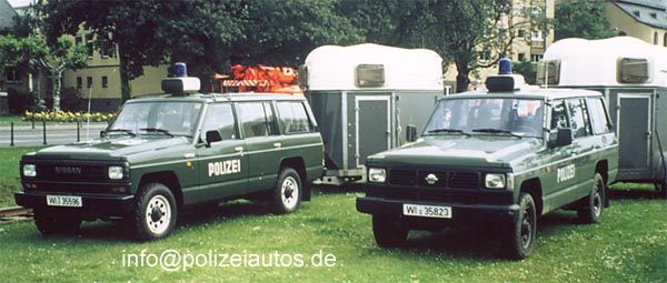 Fahrzeuge der hess. Reiterstaffel als Zugfahrzeuge für Pferdeanhänger (zwei verschiedene Baujahre).