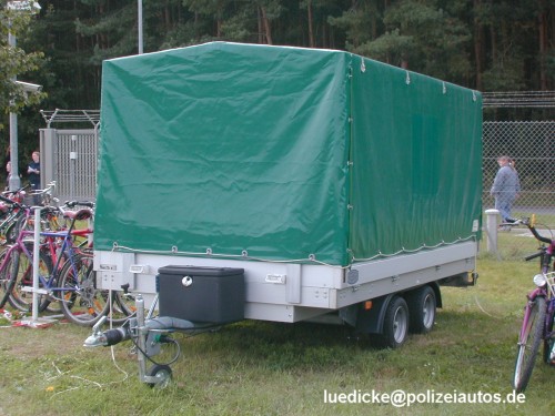 Dieser Anhänger ist mit einem Verkehrssicherungssatz beladen. Nach der Umbenennung in Bundespolizei wurde das BGS-Wappen entfernt.