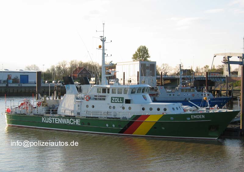 | Beschreibung: | Zollboot EMDEN (Geschwindigkeit: 29 sm/h - 3 Motoren x 1322 kw/ 1795 PS - 8 Mann Besatzung) der Küstenwache im Hafen Emden. Fotos: Frank Lange |