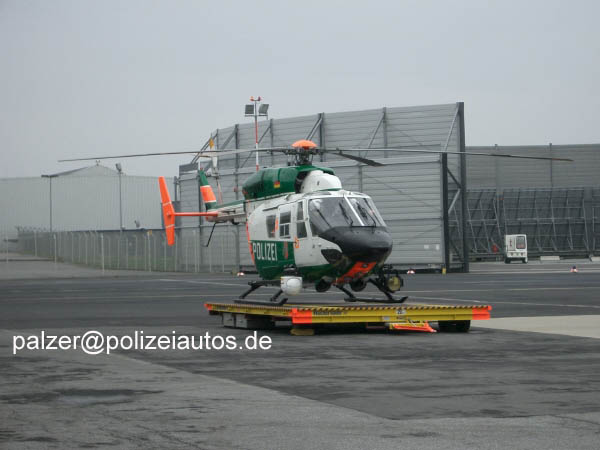 Hubschrauber der Polizeifliegerstaffel NRW ausgerüstet u.a. mit Wärmebildkamera und Suchscheinwerfer für den Einsatz als Alarmhubschrauber.