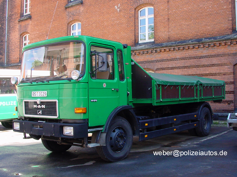 Wechselladerfahrzeug (WLF) der Polizei Niedersachsen, hier mit Pritschenaufsatz