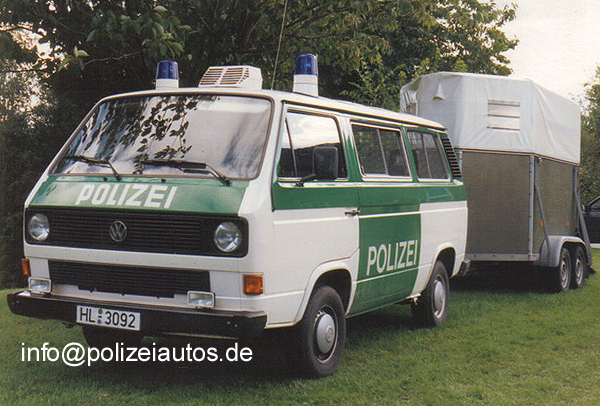 VW Transporter der Reiter- und Hundestaffel (RuH) mit Pferdeanhänger.