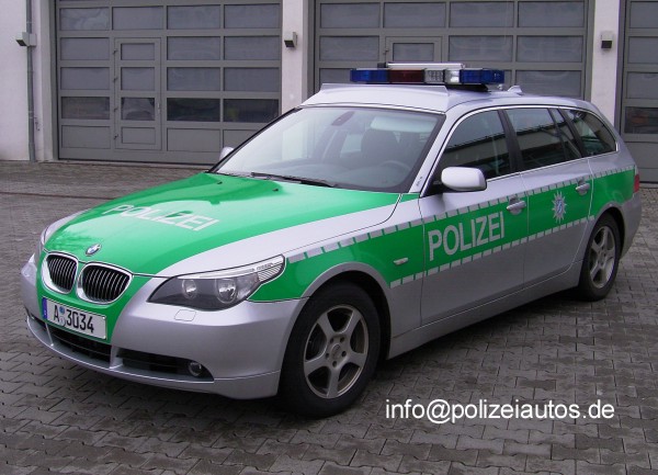 | Beschreibung: | BMW 525d Touring als Funkstreifenwagen mit Hänsch DBS 975 LED-Blaulichtbalken und klappbarem Infogeber. Fotos: Michael Dienst |