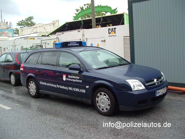 Einsatzfahrzeug des Bezirklichen Ordnungsdienstes der Freien und Hansestadt Hamburg mit Blaulicht. Foto: Jörns
