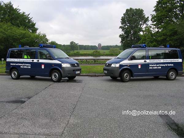 Die VW Transporter T5 des Bezirklichen Ordnungsdienstes der Freien und Hansestadt Hamburg.