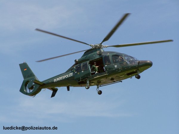 | Beschreibung: | Maschine in dunkelgrüner Farbgebung mit BUNDESPOLIZEI-Beschriftung. Max. Geschwindigkeit: 324 km/h - Reisegeschwindigkeit: 252 km/h - Reichweite: 856 km - Flughöhe max.: 3965m - Flugdauer: 3:20h - Dauerleistung: 2 x 800 PS - Sitzplätze: 15 (incl. Besatzung). |