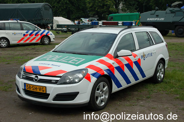 | Beschreibung: | Dieses neue Einsatzfahrzeug mit niederländisch/deutscher Beklebung aus der Politieregio Limburg Noord (Venlo) wird im Grenzbereich bei gemeinsamen Streifenfahrten mit deutschen Polizeibeamten eingesetzt. |