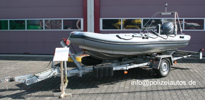 Schlauchboot der Bereitschaftspolizei auf einem Trailer