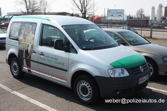 Fahrzeug der Polizei Dortmund mit Aufklebern zur Nachwuchswerbung
