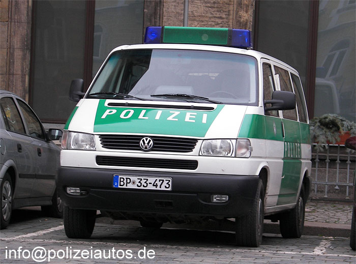 Funkstreifenwagen mit ungewöhnlicher Beklebung auf der Motorhaube.