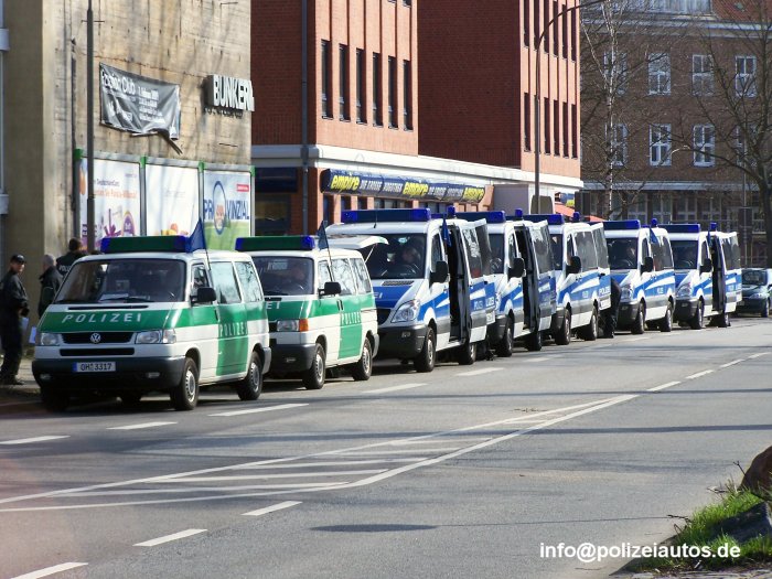 Einsatzzug der Bereitschaftspolizei Schleswig-Holstein am Rande einer Demonstration in Lübeck
