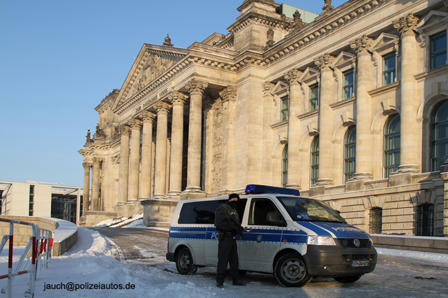 Einsatzkräfte der Bundespolizei sichern aufgrund der aktuellen Terrorwarnungen das Reichtstagsgebäude ab.