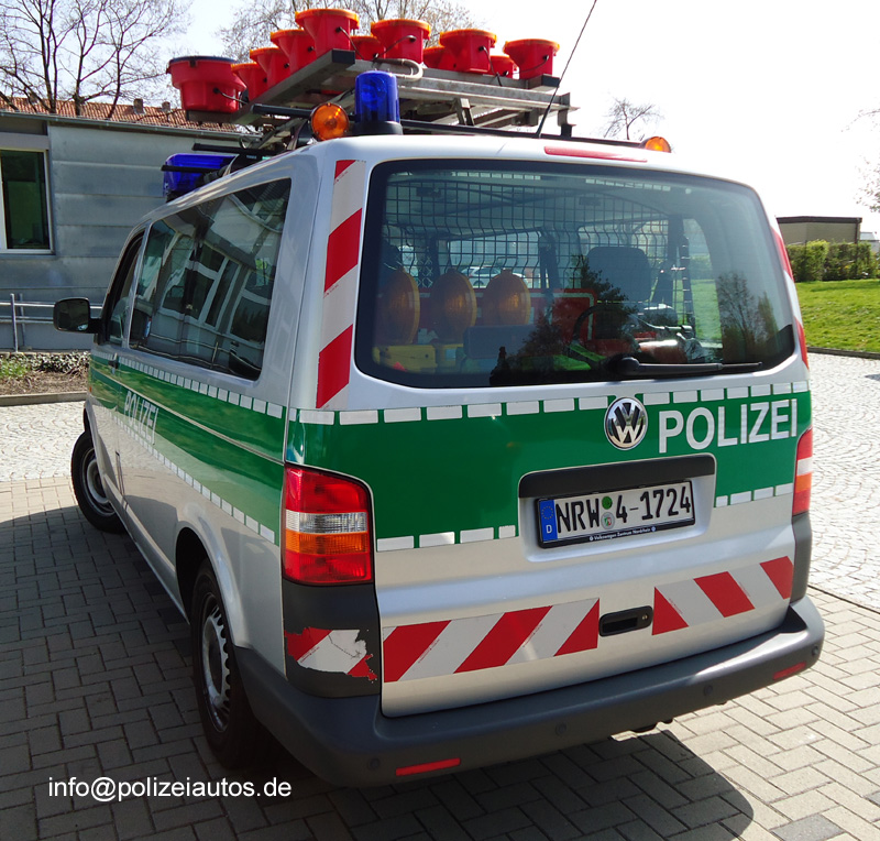 Funkstreifenwagen der Autobahnpolizei mit heckseitiger Warnmarkierung.