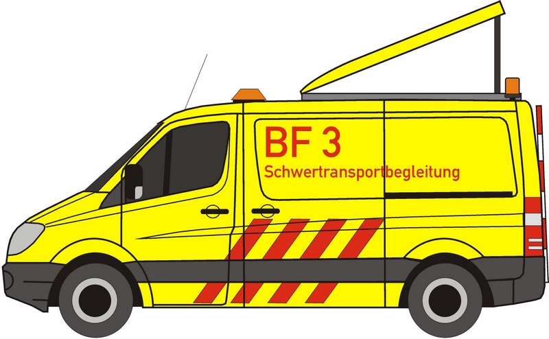 Fahrzeug für die Absicherung von Schwertransporten. Bitte beachten Sie die Hinweise in der