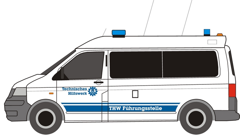 Führungskraftwagen der Fachgruppe Kommunikation für den Aufbau einer THW-Führungsstelle. Bitte beachten Sie die Hinweise in der